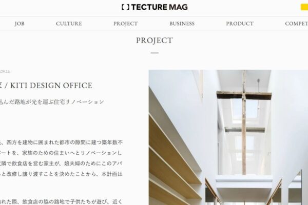 先日、建築・インテリアのWEBメディア「TECTURE MAG」に、KITIのプロジェクト「楓灯(ふうとう)の家」を掲載していただきました。 楓灯の家は、四方を建物に囲まれた古い木造アパートを、家主が…