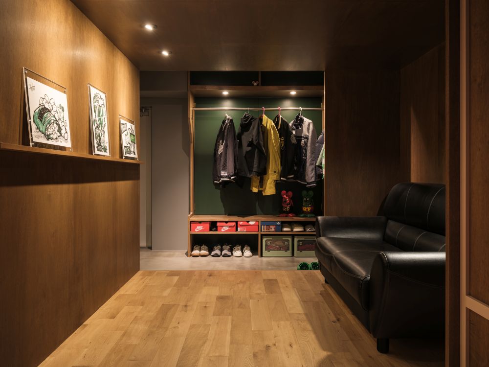押上の家では、ロッカー裏にある既存の窓が共用廊下に面しており、中の様子が見えてしまうため、扉で覆う計画としました。