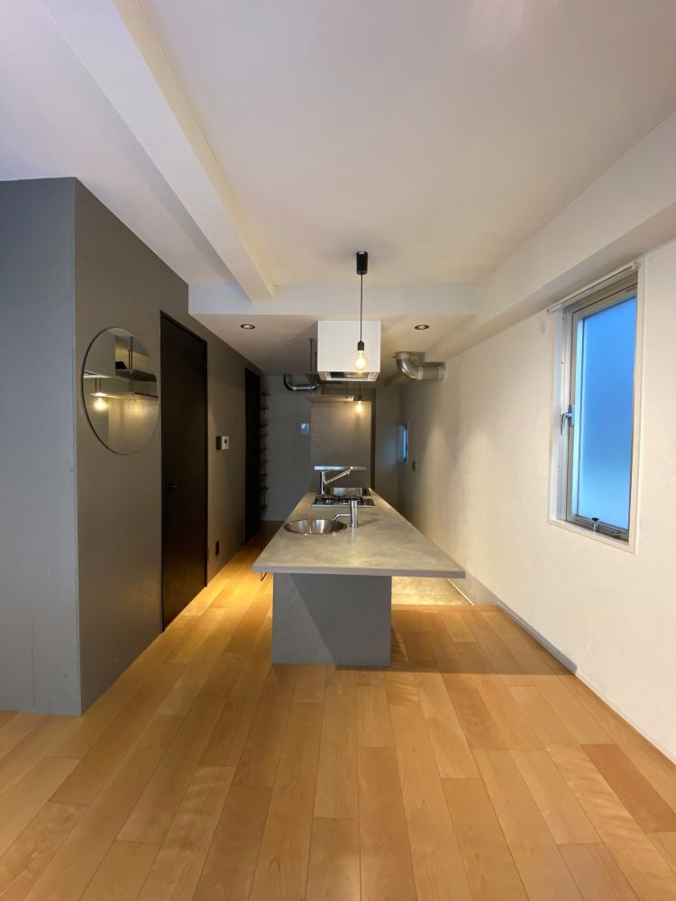 回遊動線で人が集まる半造作キッチン|世田谷通りの家