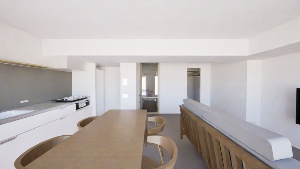 この住まいでは、その周辺環境を活かしながら、素材の質感と光の広がりを大切に空間を整えました。