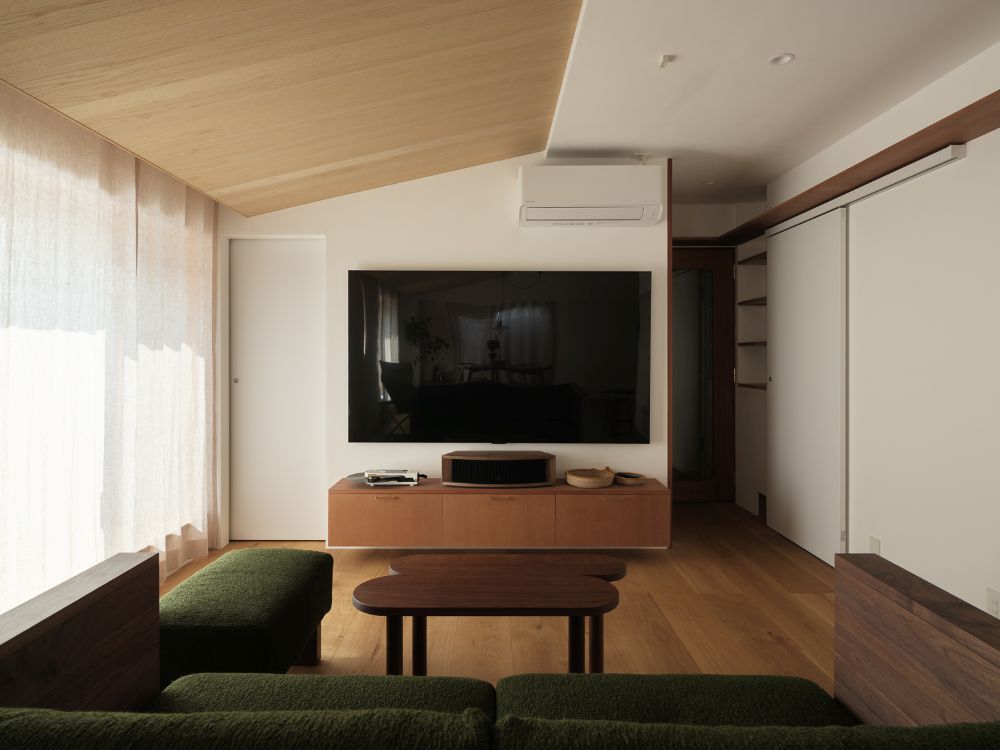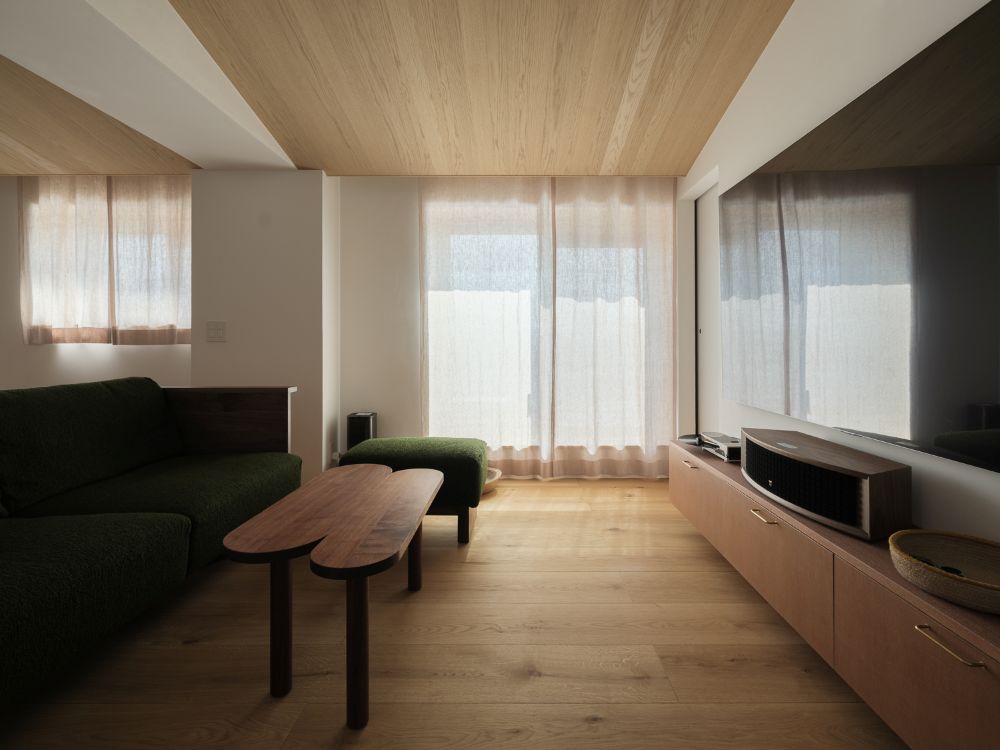 「墨田の家」は、素材の力を最大限に活かし、暮らしの舞台をシンプルかつ上質に整えました。オーク材の勾配天井、漆喰の壁、そして選び抜かれた仕上げが、日常の時間をより豊かに彩ります。