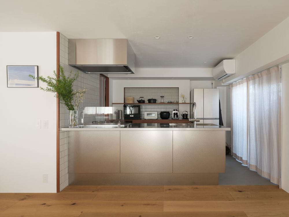 さらに、ステンレスのキッチンや、ショールームでお施主様が選んだこだわりのタイルなど、細部に至るまで素材選びを大切にしました。ひとつひとつの選択が、住まいに上質な雰囲気を与えてくれています。